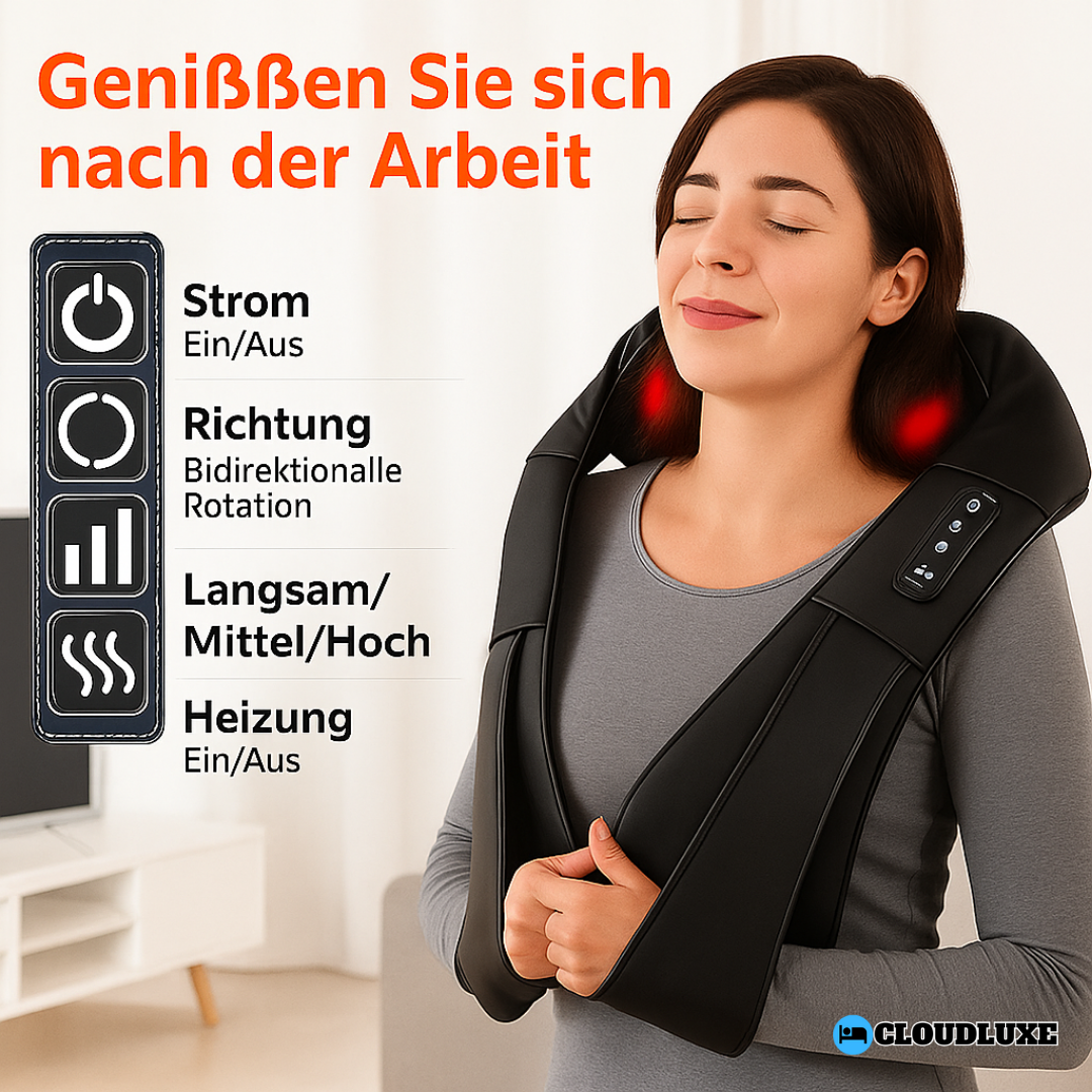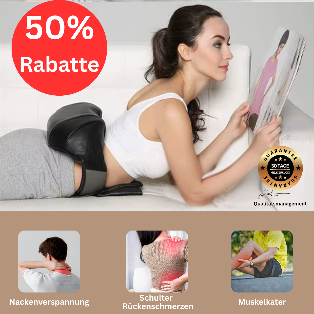 Die Kombination aus Massage und Wärme lindert Rücken-, Nacken- und Muskelschmerzen spürbar und fördert die Durchblutung.